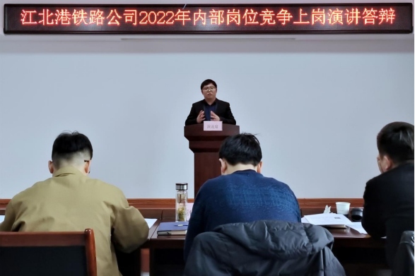 競崗會上,競崗者圍繞對競爭崗位的認知、工作思路及目標設想、團隊協作和管理等幾方面逐一進行慷慨激昂的演講,或引用數據,講述過往業績和故事;或聯系自身,將個人優勢與崗位工作緊密結合談發展。在競崗演講過程中,競崗者從容自信演講,沉著應對答辯,考驗了競崗人員業務知識的日常積累和隨機應變能力,充分展現了江北港鐵路公司職工朝氣蓬勃、銳意進取、敢于擔當的良好精神風貌,整個過程緊張有序,精彩紛呈。