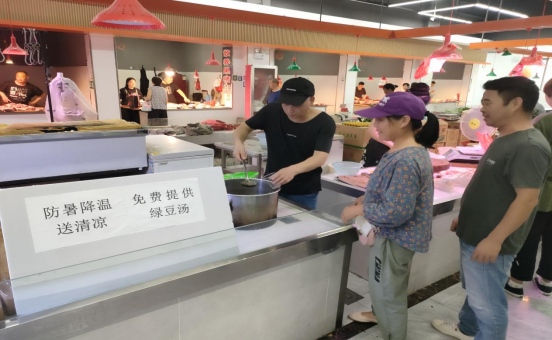 同時,針對近期連續出現的高溫天氣,世界花園農貿市場為營造良好的市場氛圍,切實讓商戶和消費者從經營和購物中感受到市場管理方的關愛,自8月1日起,世界花園農貿市場開展“夏日送清涼,消暑綠豆湯”活動,為廣大商戶和消費者送去一份“清涼”。此次活動的開展,不僅受到廣大商戶和消費者的稱贊,還受到上級主管部門的表揚,推動了分公司服務水平再上新臺階。