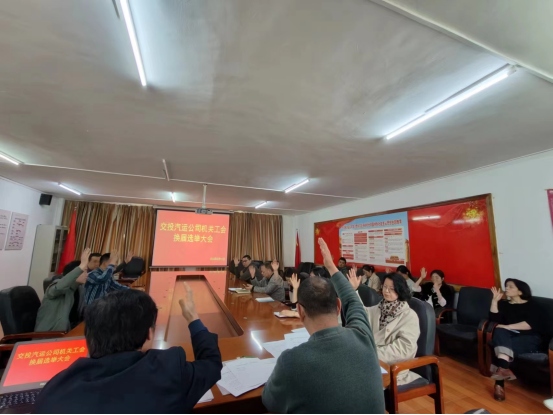 交投汽運公司于2024年1月選舉產生第一屆工會委員會、工會經費審查委員會。為進一步加強基層工會組織建設,建立健全基層工會組織機構,充分發揮基層工會作用,全面落實和完成公司工會各項工作任務。根據《企業法》、《工會法》、《中國工會章程》等有關規定,2024年2月公司工會組織開展公司機關工會、汽車站工會、客運公司工會和誠信物業分公司工會組織換屆選舉工作。