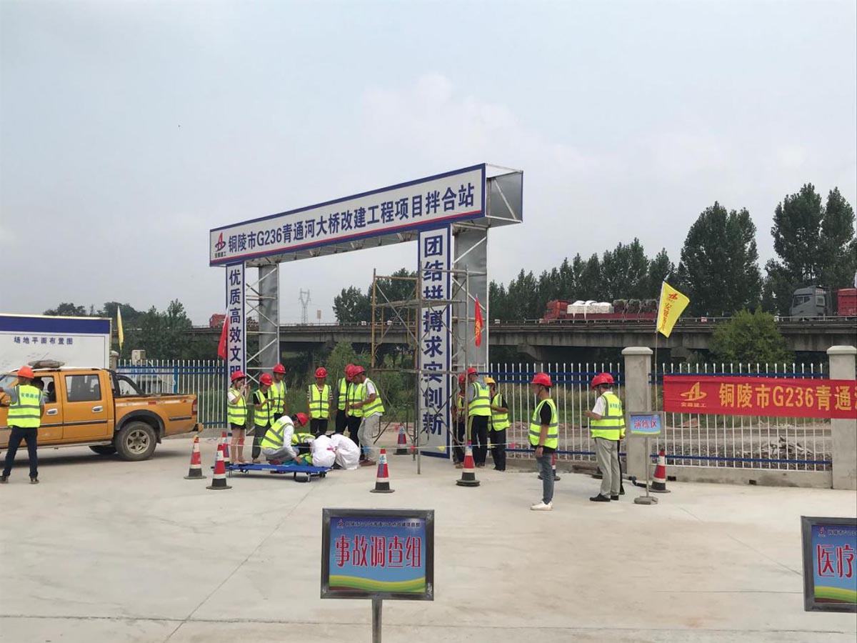 7月1日下午,集團(tuán)公司安全領(lǐng)導(dǎo)小組辦公室在G236青通河大橋攪拌站舉行高空墜落應(yīng)急演練,參加演練的單位有市質(zhì)監(jiān)局、集團(tuán)公司安全領(lǐng)導(dǎo)小組辦公室,華越、華信、藍(lán)頓、通悅子公司以及G236項(xiàng)目參建單位相關(guān)人員。