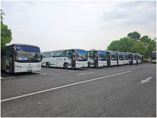 4月19日,第三屆江南銅谷風景道徒步大會在鐘鳴鎮金鳳村舉行。千余名徒步愛好者以江南銅谷風景道中的金山為起點,一路徒步賞景至鳳凰山景區。交投汽運有限公司作為活動運輸保障單位,積極配合活動主辦方,共投入31臺新能源電車(其中2臺作為機動備用車在順安站點待命),并以嚴謹的統籌協調能力和專業服務,為這場春日徒步盛事提供了堅強的運輸保障。