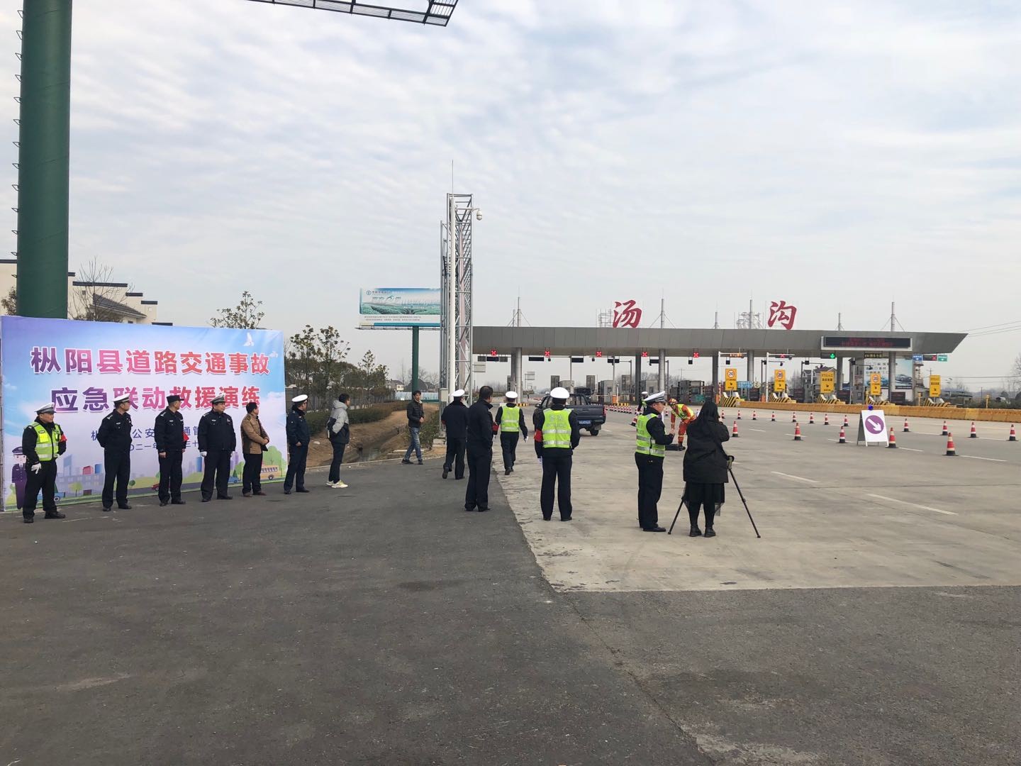 為切實做好雙節期間交通安全保障和道路交通管理工作,確保假期道路交通安全、通暢、有序,應急事故處理迅速、準確,12月31日下午,樅陽縣公安局交警大隊于湯溝G374收費站銅陵往樅陽方向開展樅陽縣道路交通事故應急聯動救援演練,江北公路管理公司員工參與觀摩學習。