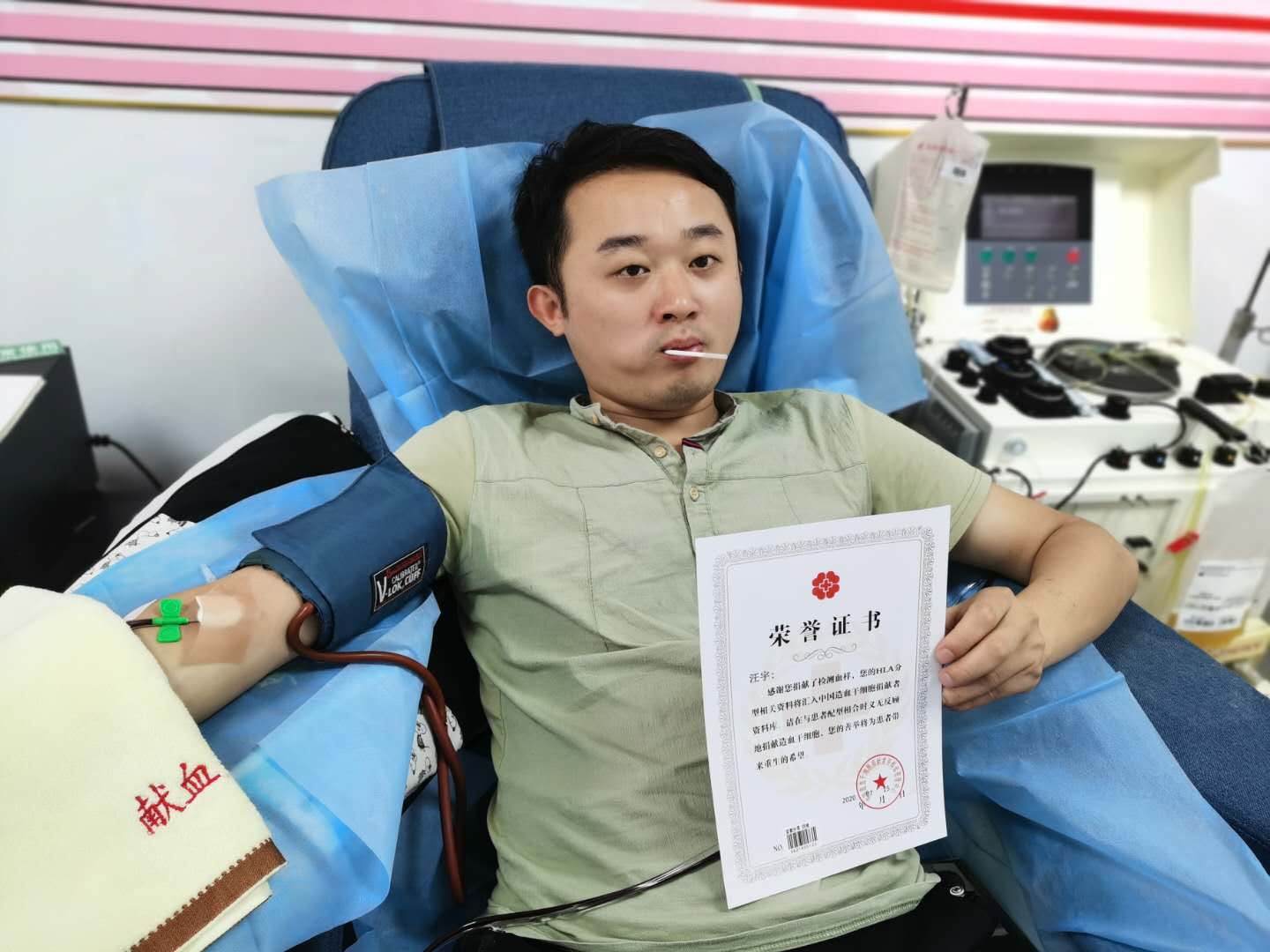 7月15日上午,經過2個小時的采集,集團公司員工汪宇同志在市中心血站再次成功捐獻了B型血小板,為一名素不相識的患者送去了生命的希望,這是他今年以來的第二次捐獻,充分彰顯了國企員工的使命與擔當。