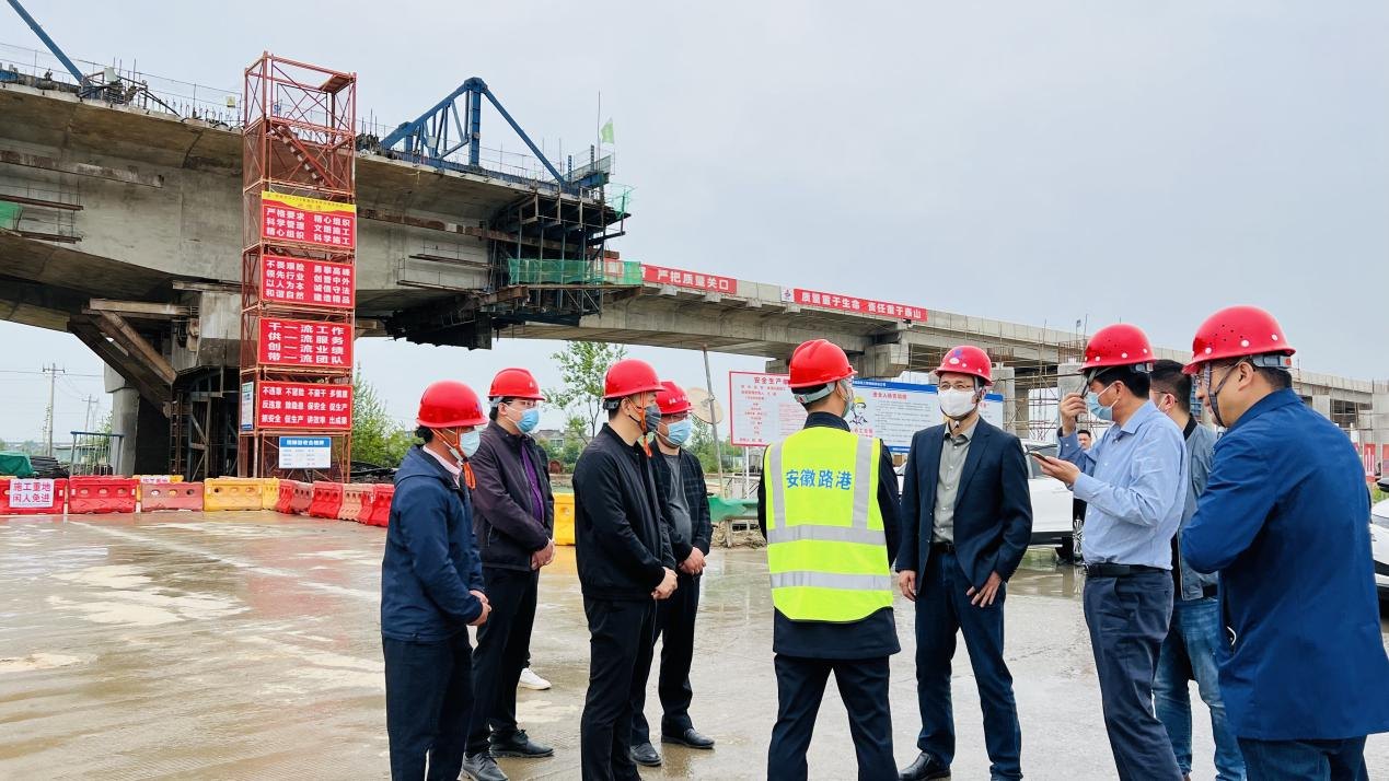 周文勝一行深入施工現(xiàn)場,與項(xiàng)目現(xiàn)場負(fù)責(zé)人深入交談,聽取了關(guān)于項(xiàng)目進(jìn)展、安全生產(chǎn)、疫情防控及下步工作安排等情況匯報。