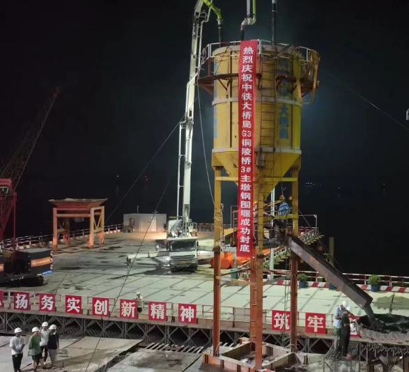 8月10日凌晨5時,經過數個日夜的連續澆筑,G3銅陵長江公鐵大橋3號主墩鋼圍堰水下封底順利完成,標志著大橋北岸主墩即將進入承臺施工階段,為后續塔柱及上部結構施工奠定了堅實的基礎。