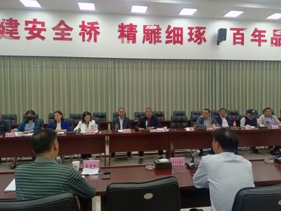 王友貴一行首先前往G3橋4號主墩現場觀摩了施工情況,對項目概況、施工工藝、安全保障、環境保護、防疫工作進行了深入了解,隨后前往G3橋項目部會議室觀看了G3橋宣傳片;聽取了市交通運輸局關于今年以來交通項目建設情況的匯報并就G3橋建設及銅陵交通建設展開了座談交流。