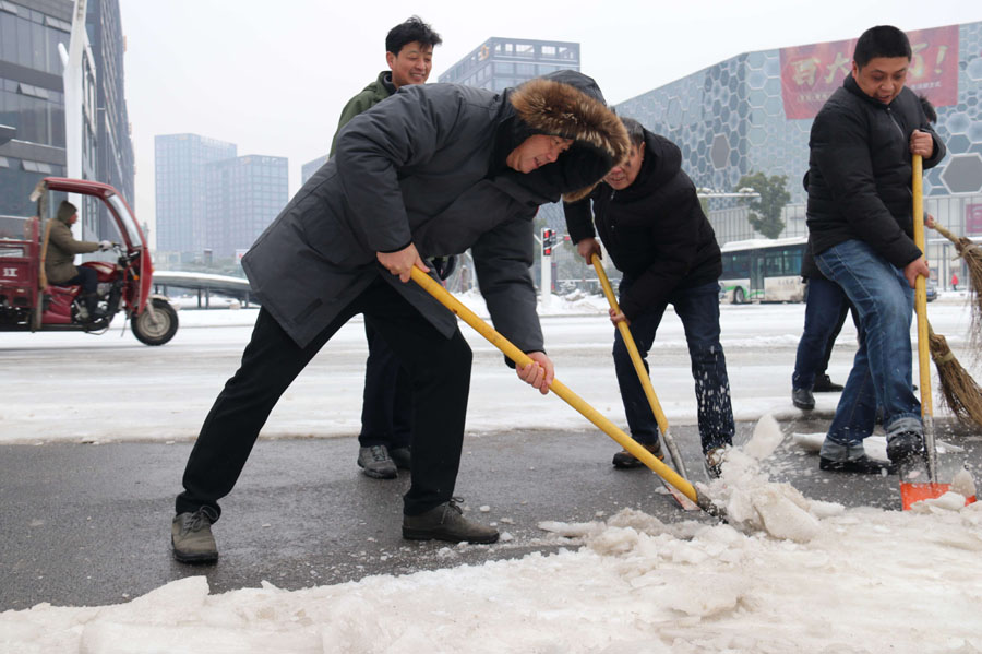工作隊奮力鏟雪