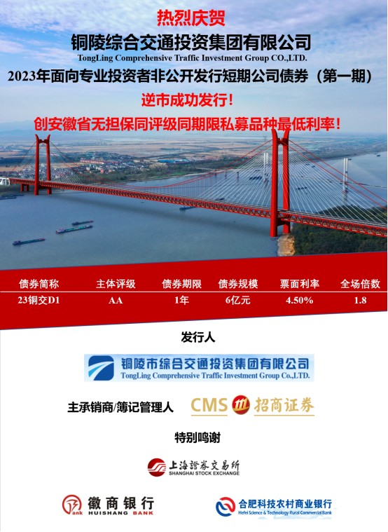 此次發行成功,創下安徽省同評級同期限私募品種歷史最低利率,倍數為1.8,是交投集團在資本市場的又一次華麗亮相。不僅豐富了交投集團直融產品體系,優化了交投集團負債利率水平,同時為后續交投集團在資本市場的持續運作打下堅實基礎。