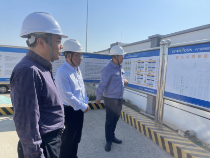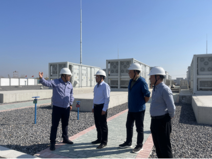 在蚌埠市,龍道寧一行赴中廣核新能源安徽有限公司固鎮(zhèn)分公司固鎮(zhèn)縣儲能電站項目現(xiàn)場,通過實地參觀、聽取情況介紹等,詳細了解了儲能項目建設情況,并就儲能項目建設投資、運營過程中的相關問題進行了深入交流探討。