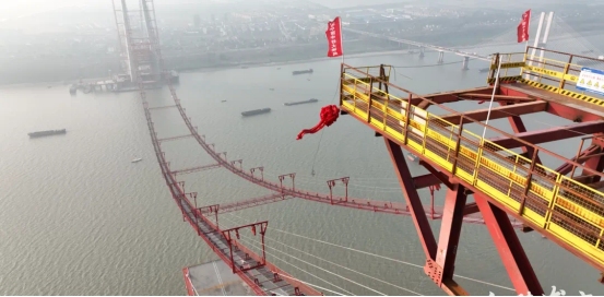 11月30日,由市交投集團投資建設、中鐵大橋局承建的G3銅陵長江公鐵大橋最后一個貓道門架安裝完畢,為大橋貓道拼上最后一塊“拼圖”。在陽光的照耀下,貓道懸于空中,將兩岸錨碇、主塔相連,如同色彩鮮艷的“空中走廊”。不久后,大橋首根纜索就能順著牽引繩飛渡長江。