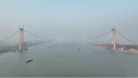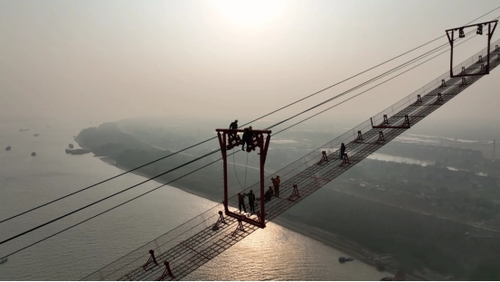 自10月20日先導索過江,到11月30日最后一個門架安裝完成,大橋貓道在45天內安全完工,為大橋纜索系統的施工創造了良好條件。未來,一股股纜索將在其上完成“穿針引線”,為大橋主梁過江提供關鍵支撐。