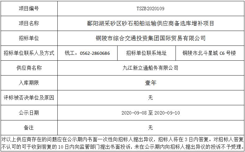 招標單位:銅陵市綜合交通投資集團國際貿易有限公司