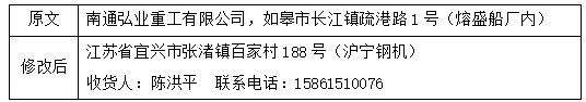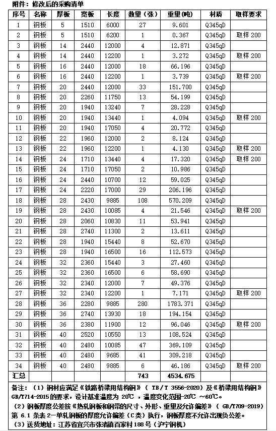 2、招標文件中關于本次采購的鋼板收貨地址修改: