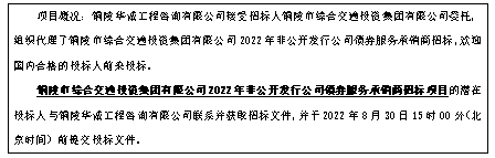 2.項目名稱:銅陵市綜合交通投資集團有限公司2022年非公開發(fā)行公司債券服務(wù)承銷商招標(biāo)項目