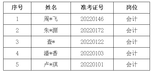 根據2022年7月25日發布的《銅陵市綜合交通投資集團有限公司公開招聘人員公告》規定,現將銅陵交投集團2022年公開招聘的會計崗位擬錄用人員予以公示,名單如下: