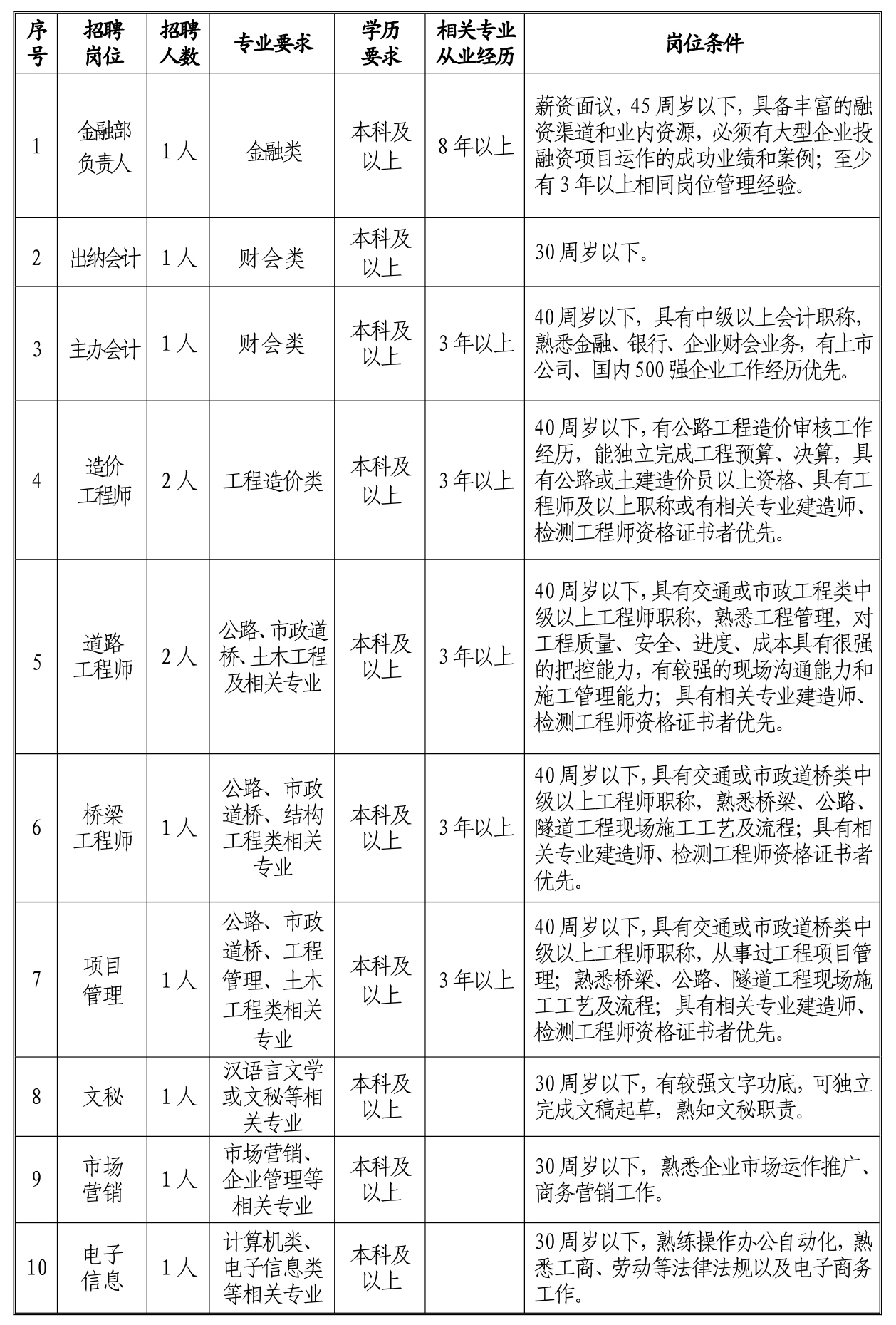 2.報(bào)名方式:采取網(wǎng)上投遞簡歷方式報(bào)名,凡有意應(yīng)聘上述招聘崗位且符合崗位要求的人員,請將報(bào)名表、個(gè)人簡歷、有關(guān)證件掃描件(學(xué)歷證書、職稱證書、職(執(zhí))業(yè)證書、身份證等)發(fā)至報(bào)名郵箱:4060356@qq.com,或郵寄地址:銅陵市北京西路290號(銅陵市交通投資有限責(zé)任公司收)。