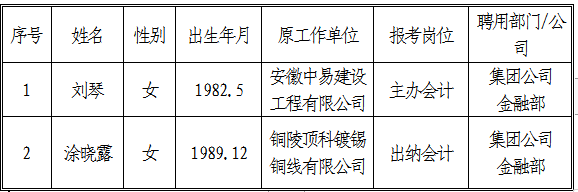 根據(jù)《銅陵市交通投資有限責任公司招聘人員公告》,現(xiàn)將出納會計、主辦會計擬聘用人員名單公示如下: