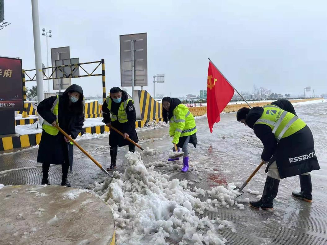 2月7日上午,隨著大雪的持續,路面積雪也已達到了一定的厚度,為了確保收費站道口的暢通和司乘人員的行車安全。集團公司第四黨支部組織黨員志愿者對道口進行了及時的清掃。同時,對過往車輛上的車牌積雪與大燈進行了擦拭,以實際保障車輛順利通行。