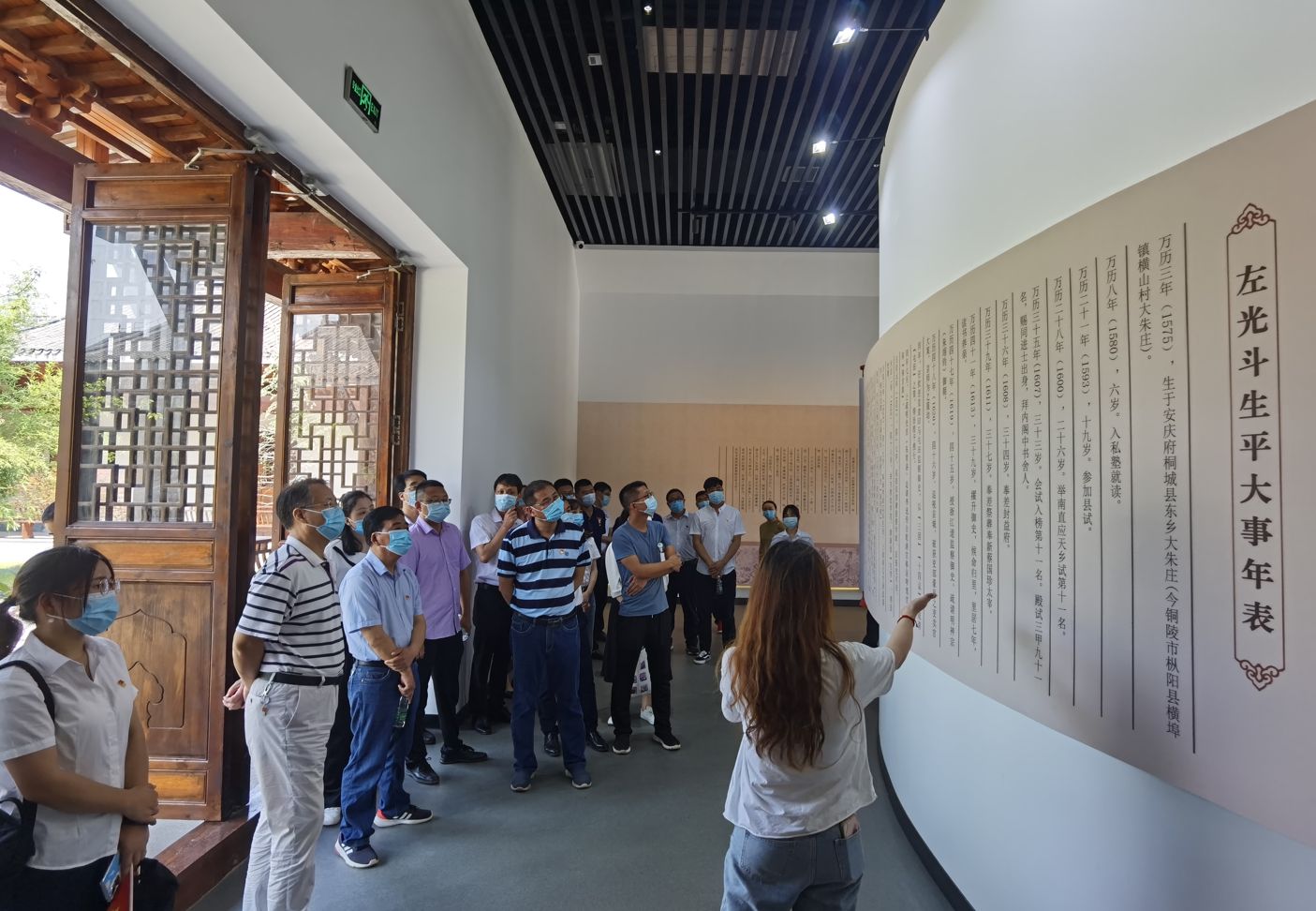 在工作人員的引導下,大家相繼參觀了門廳、乾坤正氣堂、主展館、電子館等展廳?,F(xiàn)場觀摩館內(nèi)展出的書畫、典籍、琴劍、印章等史料及文物。通過工作人員的現(xiàn)場解說,在場的黨員如身臨其境,通過這種沉浸式體驗切身感受到了左光斗以清廉立身、以恤民為本、以國家為懷的“鐵骨御史”形象。