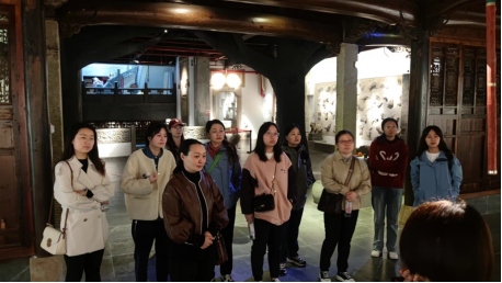 了解一座城,從博物館開始。秀山門博物館主要陳列木雕、石雕、磚雕為主題的古建筑雕刻構件,以及瓷器、字畫、刺繡等藝術品,集中展現池州地域文化的魅力。活動中,大家饒有興致地傾聽著工作人員的講解,提問、互動不亦樂乎。博物館的三樓展廳是中國古代女子文物展,這里陳列著從少女閨閣里的裝飾品和日常用具,到出閣之時的“十里紅妝”,再到婚后的“女紅”、“慈闈春秀”祝壽匾額等,這些留存至今的女性主題文物,再現了中國古代女性的一生。參觀過程中,大家凝視著這些精美的展品,在驚嘆中國古代女子巧奪天工的技藝水平同時,更是感嘆自己生在紅旗下,長在春風里的幸福。