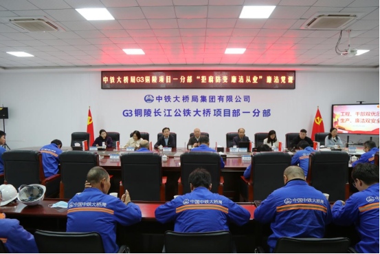 4月24日下午,集團公司邀請市委黨校鄭學年副教授赴G3公鐵橋作廉政輔導講座。集團公司黨委副書記方勁松,黨群部負責人、各支部書記及項目點黨支部全體黨員參加。