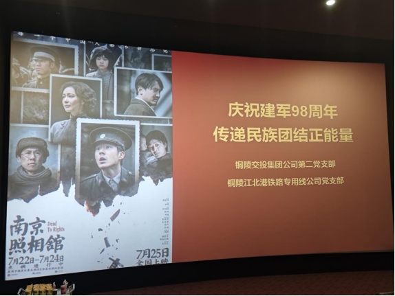 為進(jìn)一步加強(qiáng)黨性教育,傳承紅色基因,8月28日,銅陵江北港鐵路專用線公司黨支部聯(lián)合銅陵交投集團(tuán)公司第二黨支部開展“慶祝建軍98周年 傳遞民族團(tuán)結(jié)正能量”紅色觀影《南京照相館》主題黨日活動,通過沉浸式觀影體驗,引導(dǎo)黨員干部銘記歷史、砥礪初心。