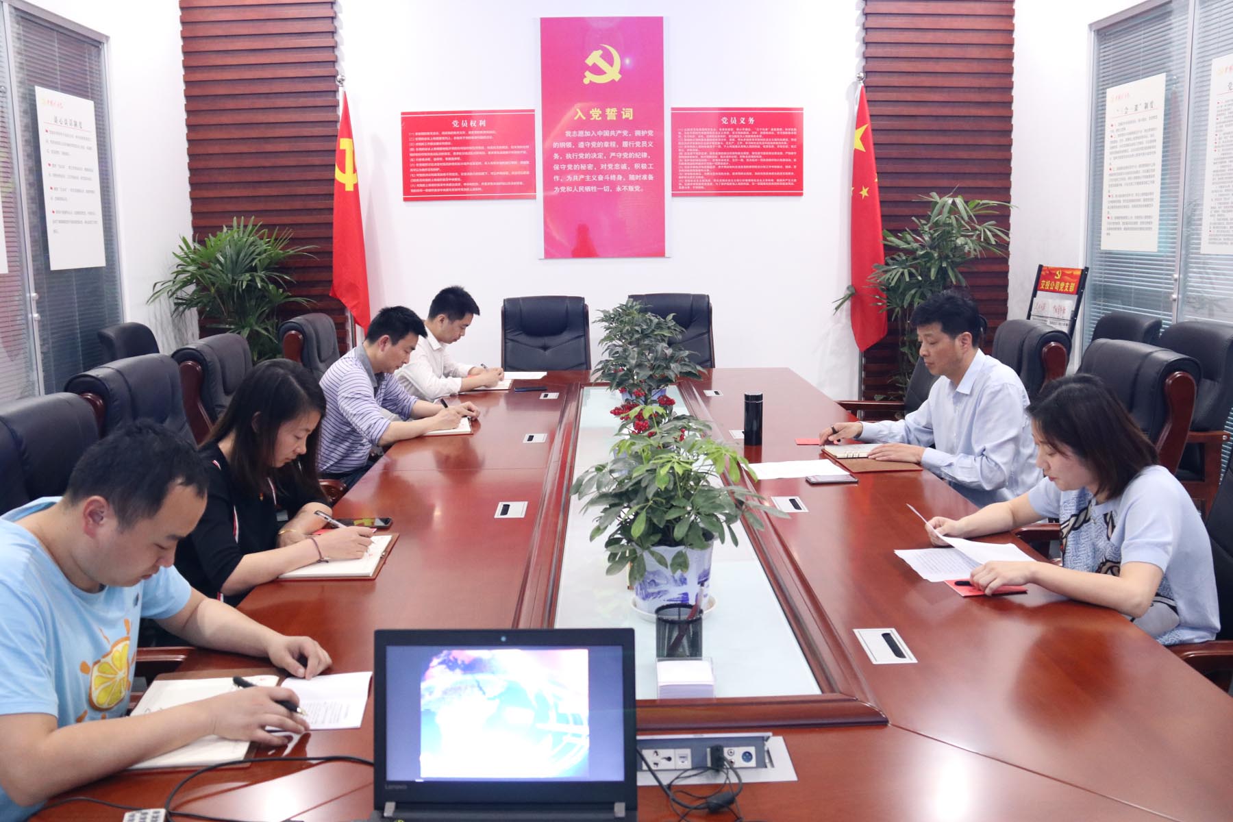 4月17日,公司機關黨支部四個黨小組分別召開會議,重點學習掃黑除惡知識讀本,觀看微動漫《新時代黨的建設總要求和八項重點任務》。公司黨工委領導班子均以普通黨員身份參加所在黨小組活動。