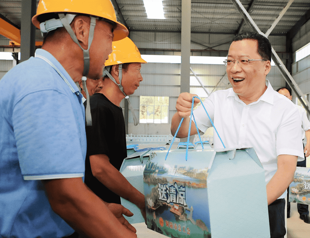 連日來,銅陵持續晴熱高溫,給一線職工帶來很大考驗。7月15日上午,市委書記丁純深入我公司部分項目現場,實地調研項目建設情況,看望慰問堅守崗位的一線職工,代表市委、市政府向全市奮戰在高溫一線的廣大職工表示慰問和感謝。市委常委、秘書長、宣傳部部長潘榮華,集團公司黨委書記、董事長何成龍參加。