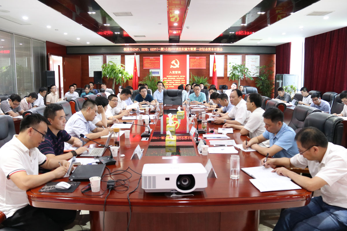 為確保G347、S232、G237(一期)公路PPP項目按照既定目標順利推進,廣泛吸取社會資本方意見建議,促進項目早日落地。7月1日下午,公司副總經理、G347公路PPP項目領導小組辦公室主任黃勇在公司會議室主持召開G347、S232、G237(一期)公路PPP項目實施方案第一次社會資本對接會,黨工委書記、董事長何成龍出席會議并講話,市財政局章霞光、市交通局管青松、項目咨詢機構湖北永業行、27家社會資本方及公司相關部門人員參加會議。