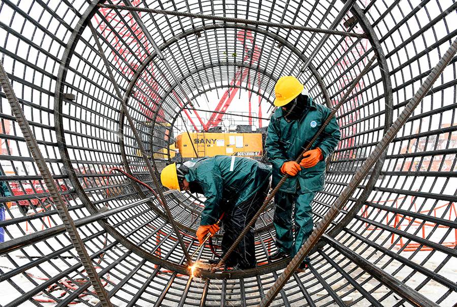 人民網合肥2月9日電(陳浩)虎年上班首日,安徽銅陵出現降雪天氣,但建設者的熱情沒有絲毫減弱。為確保G3銅陵長江公鐵大橋建設進度,施工人員頂風冒雪為大橋3號主墩安裝鉆孔樁鋼筋籠。