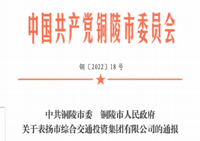 中共銅陵市委 銅陵市人民政府關于表揚 市綜合交通投資集團有限公司的通報