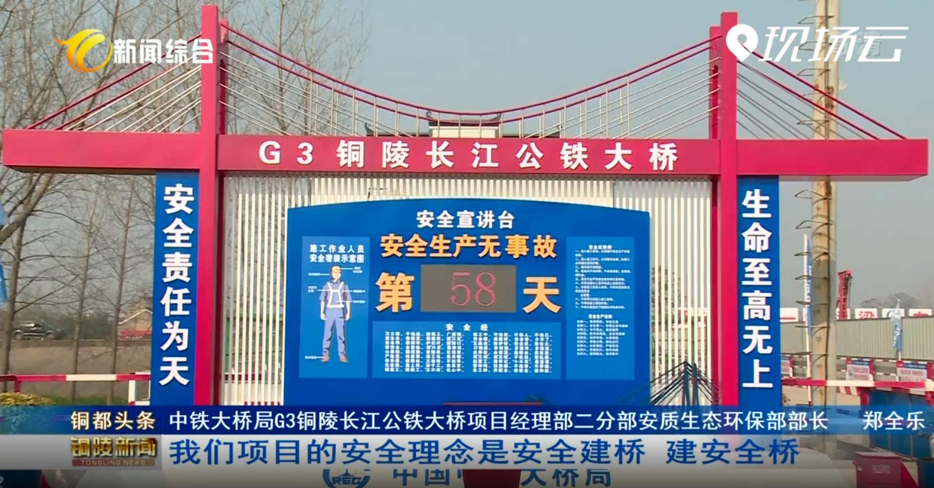 中鐵大橋局G3銅陵長江公鐵大橋項(xiàng)目經(jīng)理部二分部安質(zhì)生態(tài)環(huán)保部部長鄭全樂:我們項(xiàng)目的安全理念是安全建橋、建安全橋,確保現(xiàn)場工作當(dāng)中安全隱患能及時(shí)發(fā)現(xiàn),及時(shí)解決,確保工人在作業(yè)過程中能有一個(gè)良好的、安全的工作環(huán)境。