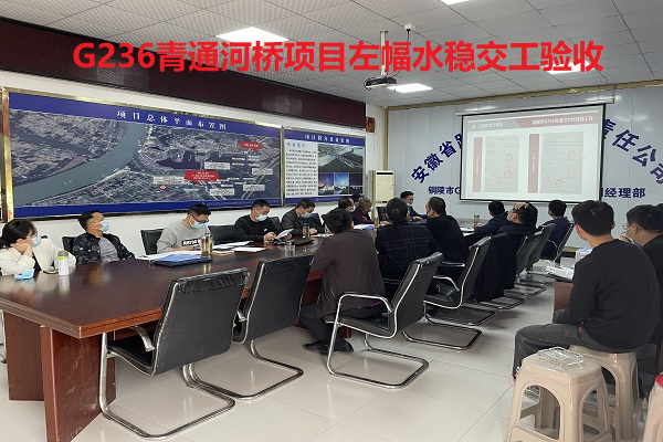 5月12日上午,G236青通河大橋改建工程左幅水泥穩定碎石基層順利通過交工驗收。