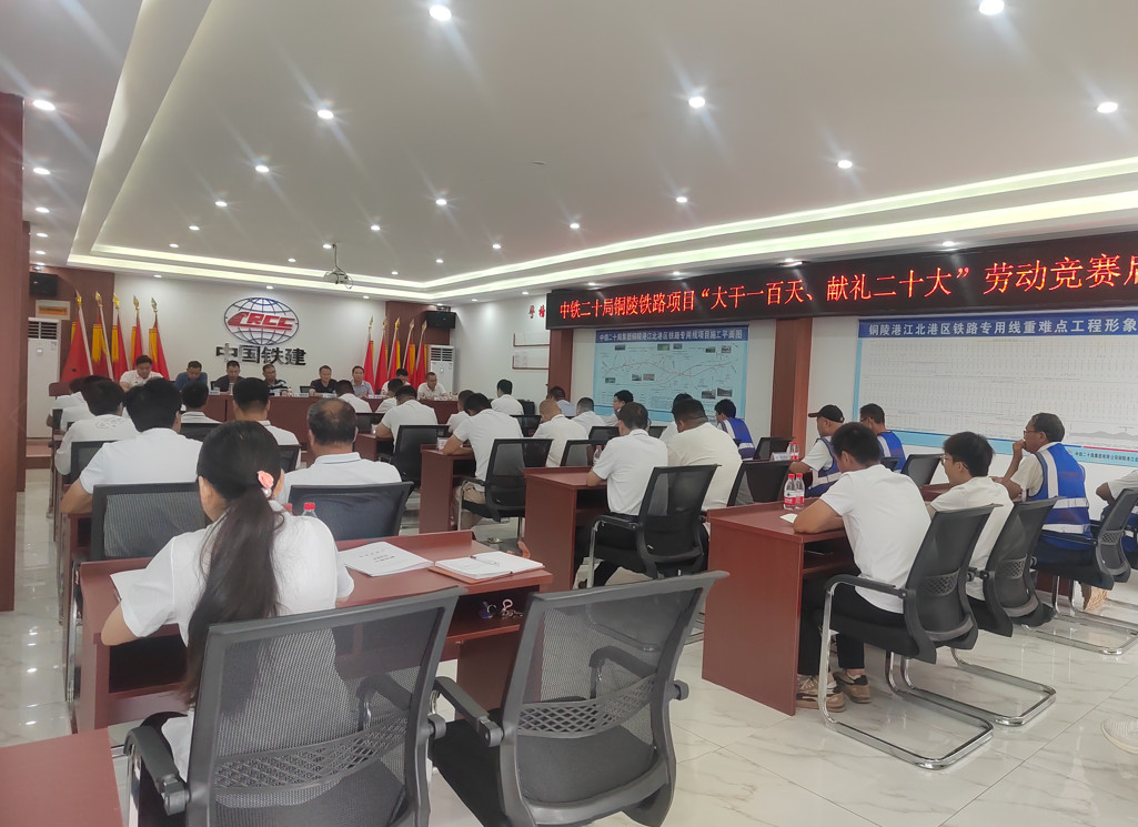 近日,江北港鐵路專用線項目用地順利通過國家自然資源部審查,標志本項目即將正式進入全面施工階段。為加快項目建設,確保項目全面施工后大干快上,7月5日,中鐵二十局江北港鐵路專用線項目部舉行“大干一百天、獻禮二十大”勞動競賽活動啟動儀式,掀起“比學趕幫超”一百天大干熱潮。