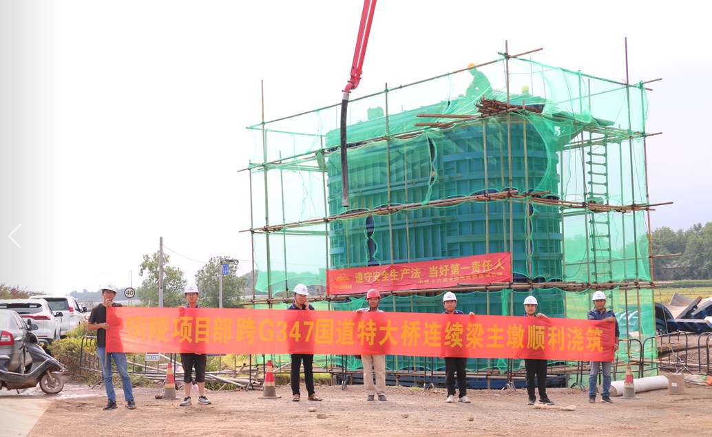 日前,歷經(jīng)6小時(shí)連續(xù)施工,銅陵港江北港區(qū)鐵路專用線跨國道G347特大橋連續(xù)梁首個(gè)主墩順利澆筑完成。