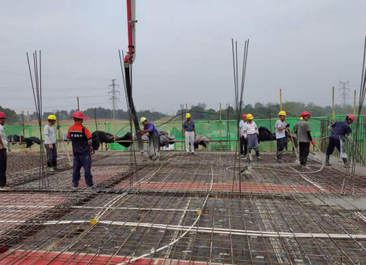 橫埠站車站綜合樓位于橫埠鎮北側,建筑面積288.112㎡,地上2層,建筑高度8.4m,結構形式為鋼筋混凝土框架結構。自項目開工建設以來,江北港鐵路專用線公司秉持“高標準起步”的建設理念,組織參建單位一手抓疫情防控,一手抓施工生產,定期召開調度會,深入現場協調解決征遷問題等。在項目全體參建單位的通力協作下,施工單位克服連續高溫天氣和疫情防控等困難,歷時74天順利完成主體結構施工。