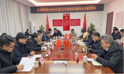 2月14日上午,江北港鐵路專用線項目(銅陵段)2023年度首次質量安全監督檢查部署會議在項目公司一樓會議室召開,銅陵市鐵路辦副主任王濱主持會議。市交投集團公司總工程師,江北港鐵路公司董事長、總經理張葉來,上海建科監督檢查組及項目施工、設計、監理單位負責人等參加會議。會上,就本次監督檢查工作進行了詳細布置,明確了督查重點。