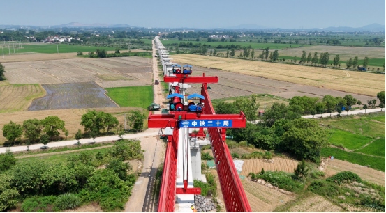 5月23日上午,在銅陵港江北港區(qū)鐵路專用線項(xiàng)目廬江段黃泥河特大橋施工現(xiàn)場,隨著長32米、重140噸的預(yù)制T梁平穩(wěn)精準(zhǔn)架設(shè)在黃泥河特大橋102號橋臺(tái)至101號墩上,標(biāo)志著江北港鐵路專用線項(xiàng)目廬江段首片T梁順利架設(shè),至此,銅陵段、廬江段全部進(jìn)入橋梁架設(shè)施工。