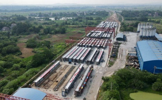 為確保梁板的高質量順利澆筑,江北港鐵路專用線公司督促施工單位堅持標準化施工和精細化管理,采用胎模法綁扎鋼筋,確保間距與保護層合格率;首澆前多次試驗優(yōu)化混凝土配合比,保障T梁強度合格、“內實外美”;采用智能張拉壓漿設備,實現(xiàn)關鍵工序全流程智能化監(jiān)控,有效規(guī)避傳統(tǒng)工藝中的質量波動。
