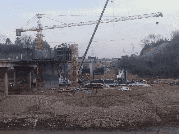 1月10日上午G236青通河橋左幅銅陵側塔吊順利安裝,也為后面的掛籃施工打下了基礎。
